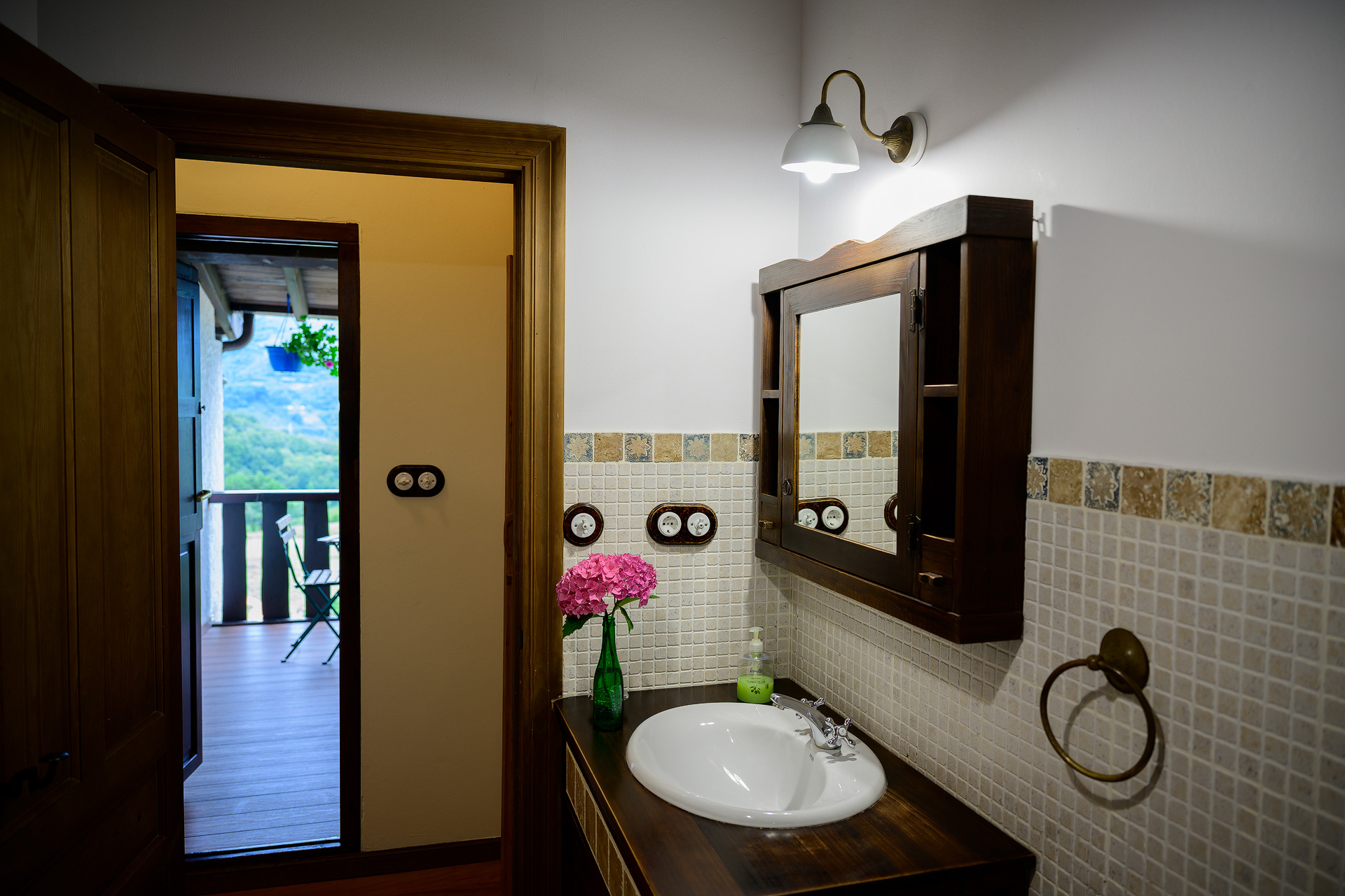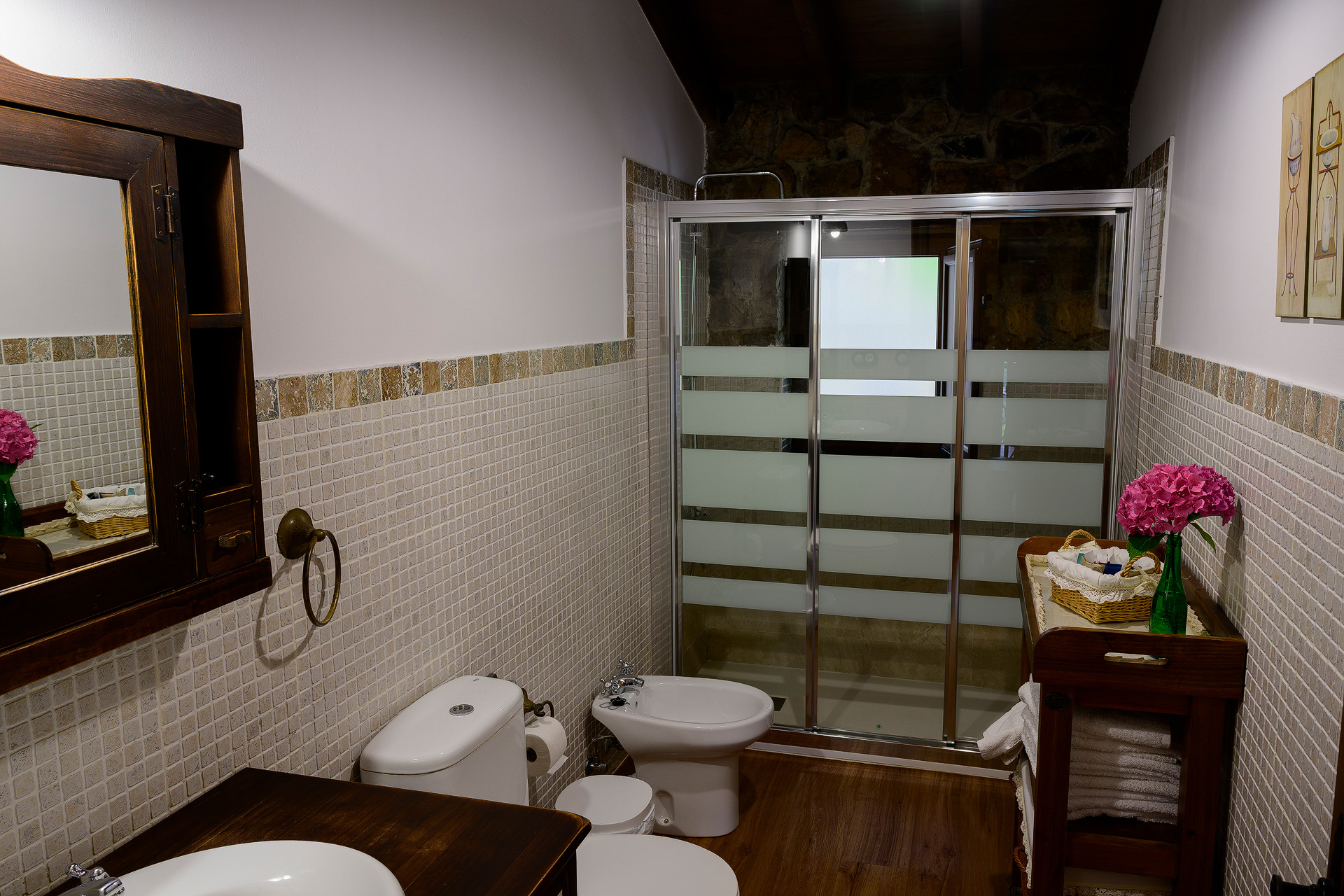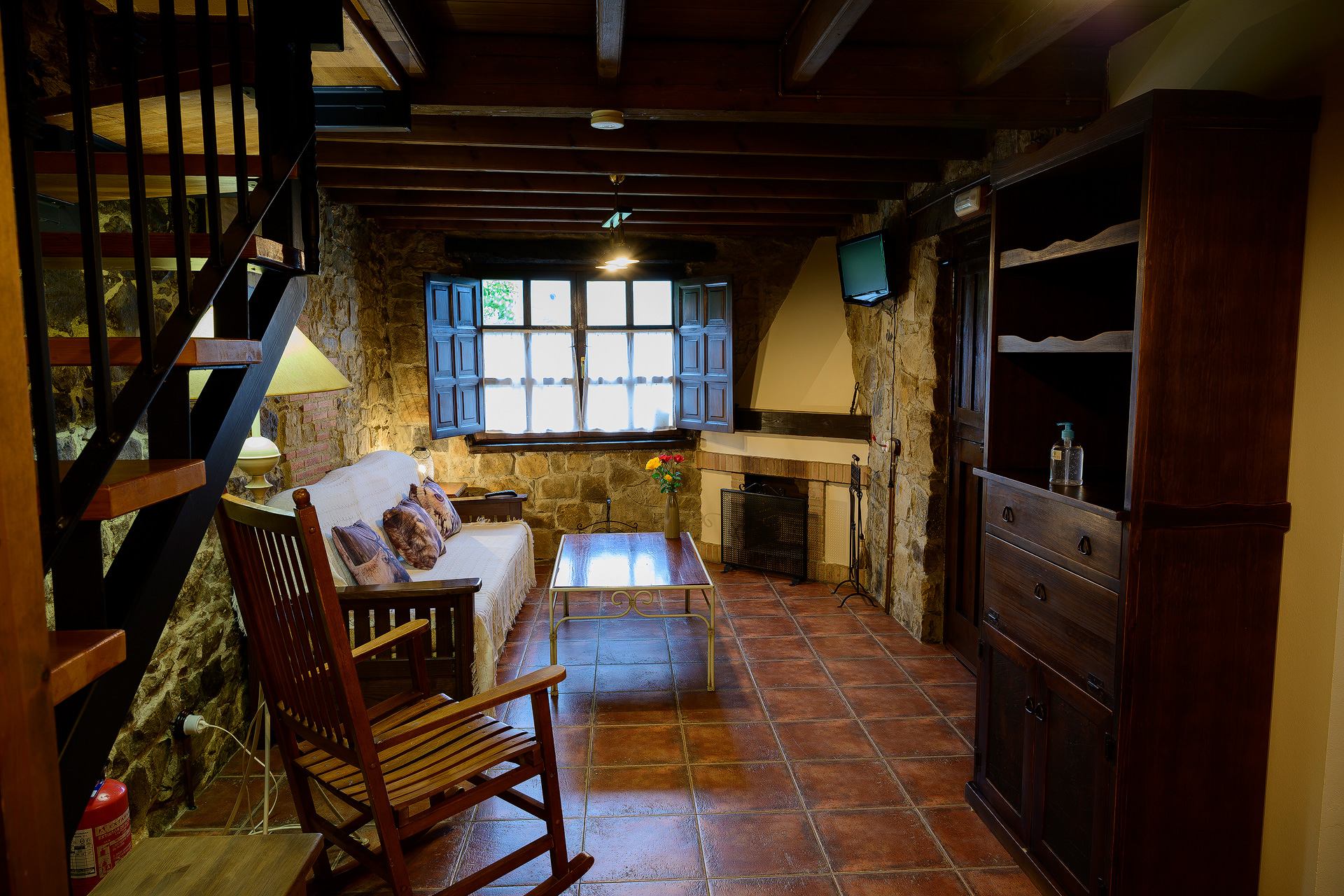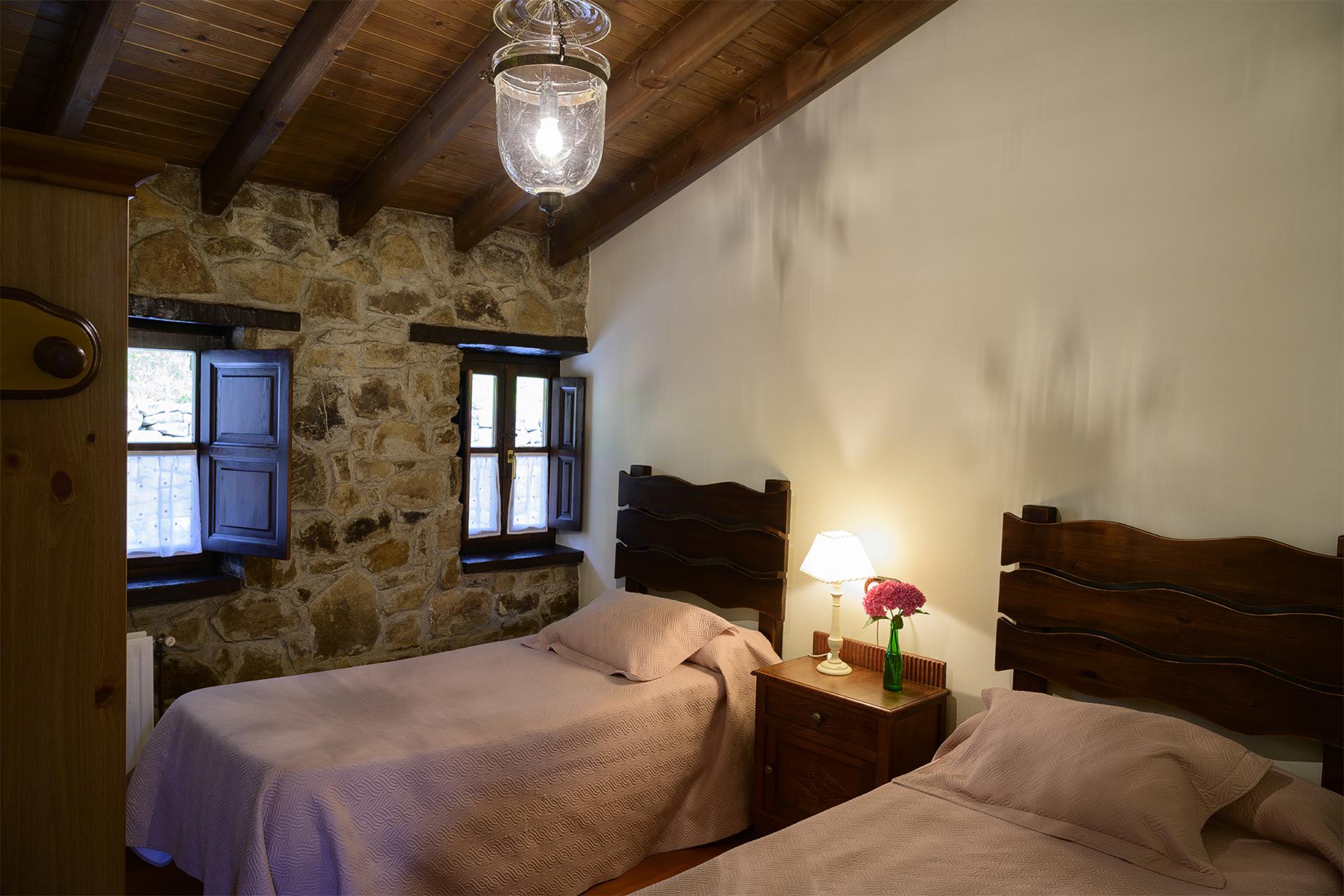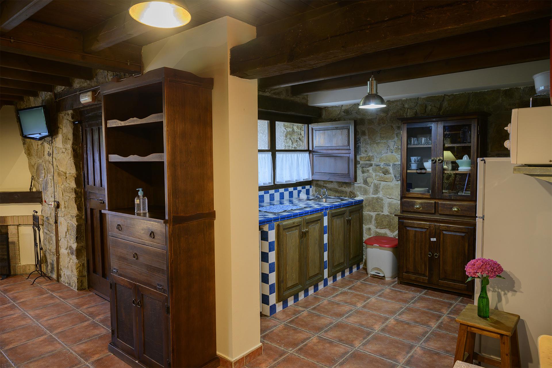 A Llagos se accede desde una antojana independiente donde colocamos la leña para la chimenea. En su planta baja tiene salón con chimenea, cocina y zona de comedor en un espacio abierto. También cuenta con un aseo con lavadora.