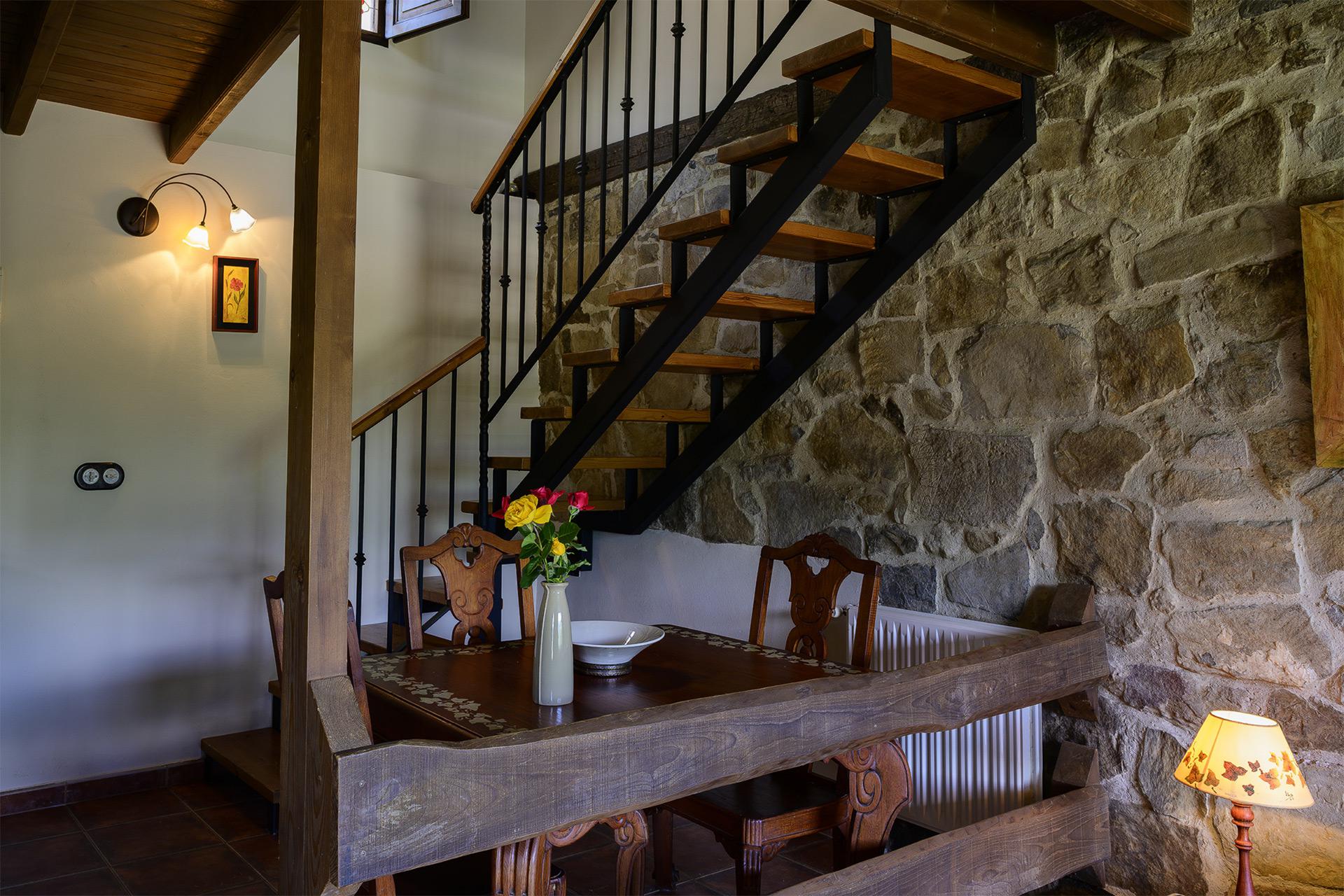 A Carbayal se accede desde una antojana independiente donde colocamos la leña para la chimenea. La planta baja la conforma un espacio abierto donde se distribuye el salón, con chimenea de leña, la cocina y la zona de comedor. También tiene aseo.